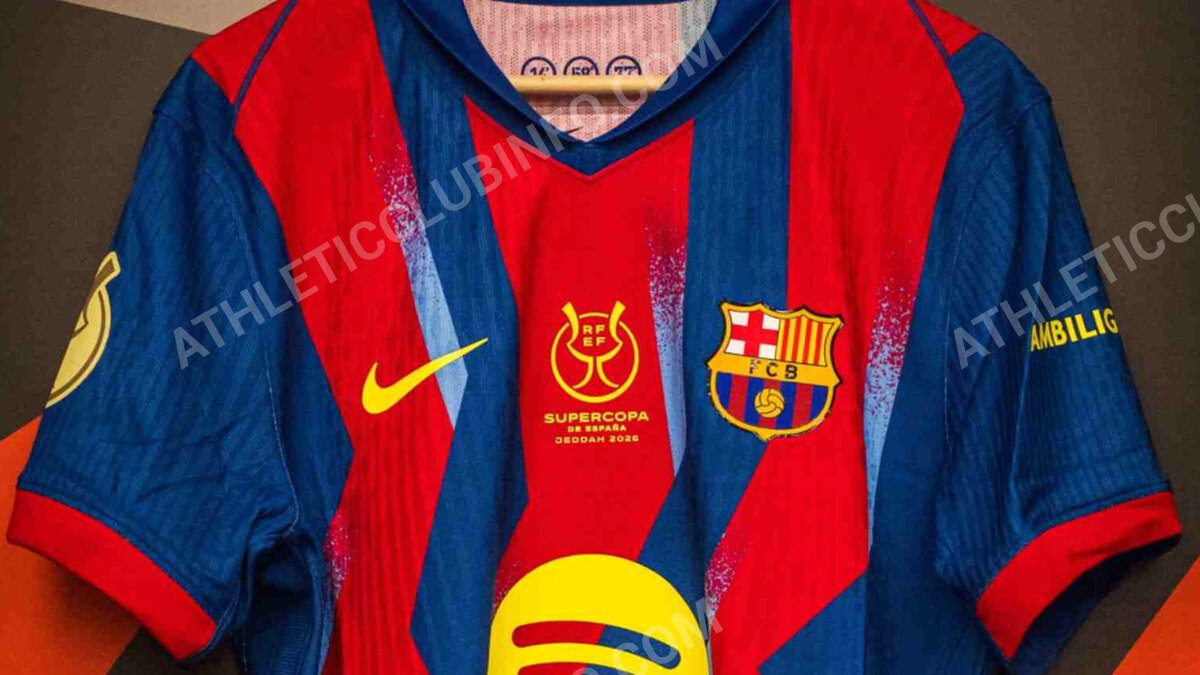 El FC Barcelona presenta su nueva equipación para la semifinal de la Supercopa de España contra el Athletic Club, que se celebra esta tarde. La vestimenta conmemora el histórico triunfo 0-3 en el Santiago Bernabéu del 19 de noviembre de 2005, un partido clave en la historia del club.