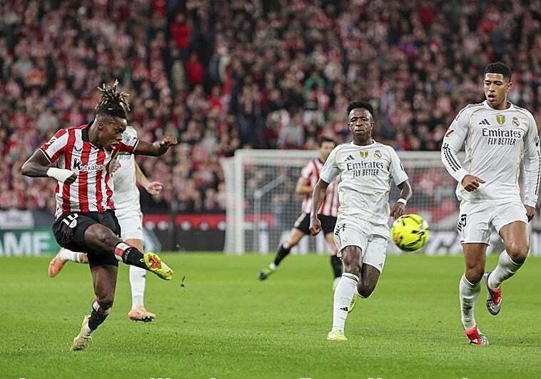 Las cámaras enfocaron a Nico Williams, cuyo gesto de sorpresa resonó entre los aficionados del Athletic, quienes se llevaban las manos a la cabeza tras el tercer gol. La actuación de Mbappé fue clave para que el Real Madrid se llevara los tres puntos y despejara las dudas sobre su técnico, Xabi Alonso.