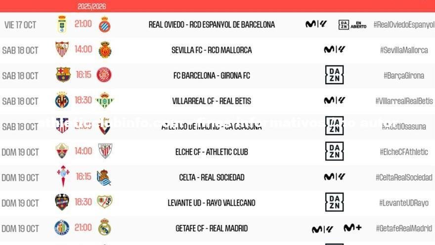 El Athletic Club regresará a la competición liguera en domingo tras cuatro partidos consecutivos en sábado. El equipo bilbaino se enfrentará al Elche el 19 de octubre a las 14:00 horas en el Martínez Valero, después de un parón por compromisos internacionales.
