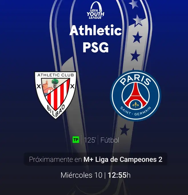 El partido de la UEFA Youth League entre el Athletic Club y el Paris Saint-Germain se podrá ver en directo a través de Movistar + Liga de Campeones 2. El encuentro se disputará el miércoles a las 13:00 horas en Lezama.