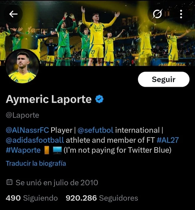 El futbolista Aymeric Laporte ha realizado un cambio significativo en su perfil, adoptando el dorsal #AL14. Este nuevo número sustituye al 27, que había estado utilizando en su actual club, Al Nassr.