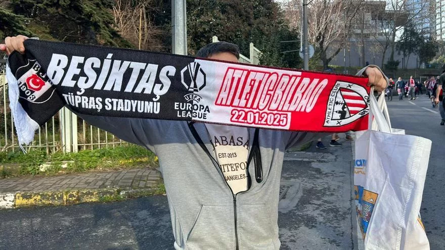 Los seguidores del Athletic Club que han viajado a Estambul para el partido contra el Besiktas han encontrado una curiosa anécdota en los vendedores ambulantes. Muchos de ellos ofrecen bufandas conmemorativas del encuentro, pero con un error notable en la escritura del nombre del club.