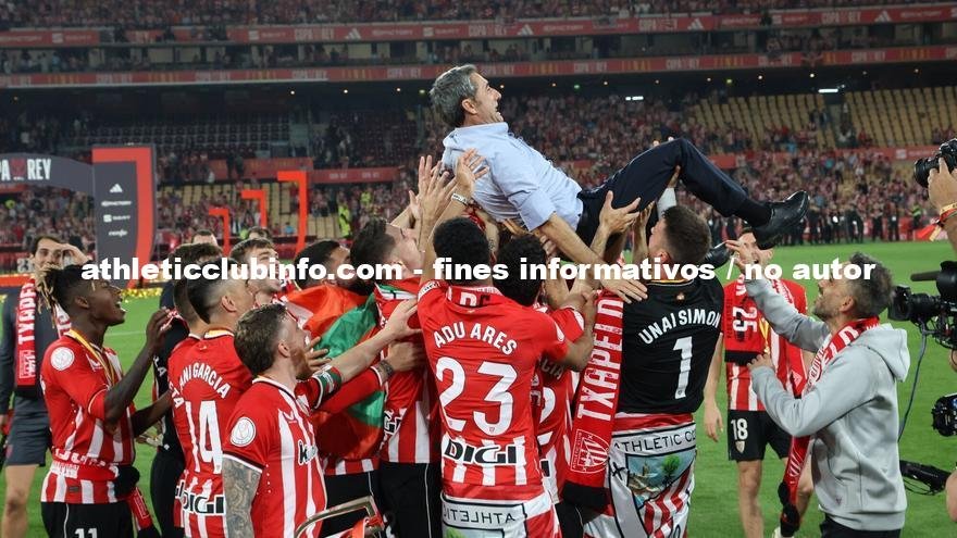 El técnico rojiblanco lució durante la celebración una camiseta en la que aparecía la imagen de Jonan Ordorika, reconocido productor y técnico de sonido, fallecido el pasado agosto y gran amigo de Valverde, junto a una gabarra y la palabra txapeldunak. Se conocieron cuando Valverde jugaba en el Barcelona y desde entonces, forjaron una gran amistad que luego se vio fortalecida cuando Ernesto empezó a formar parte del Althletic, el equipo del alma de Jonan, del que fue socio durante 48 años. Y aunque no pudo ver a Muniain levantar la Copa, estuvo muy presente durante las celebraciones.