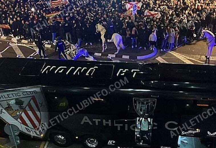 cuando finalmente llegó el autobús del club bilbaíno, los gritos se intensificaron, acompañados del lanzamiento de objetos, incluyendo rollos de papel higiénico y latas. a pesar de la fuerte pitada de los hinchas locales, los jugadores descendieron del autobús sin incidentes, gracias a la presencia policial.