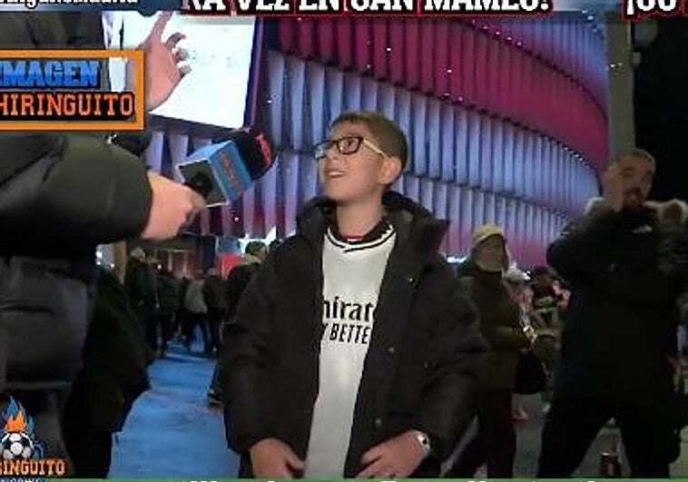 El pequeño, que lucía la camiseta de Kylian Mbappé, explicó que su padre es del Madrid y que, aunque le gustaría llevar la camiseta del Athletic, no podía arriesgarse a perder la entrada. «Pobrecillo», comentó el periodista, empatizando con su situación.