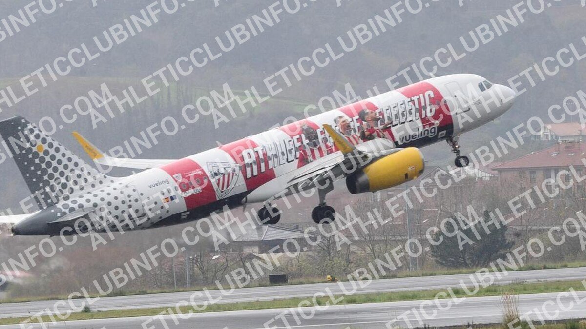 El nuevo avión del Athletic Club será presentado hoy en San Mamés durante el descanso del partido contra el Espanyol. La aerolínea Vueling y el club rojiblanco realizarán una activación visual en el césped del estadio, mostrando el diseño del nuevo Airbus A320.