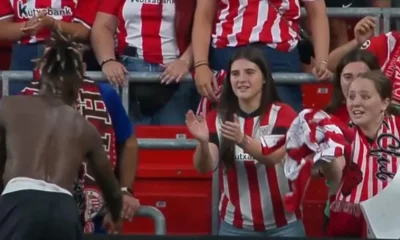 / 2 añosUn gesto que emociona: Iñaki Williams regala su camiseta a una joven aficionada tras el empate del Athletic