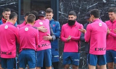 José Ángel Iribar y Raúl García, dos leyendas del Athletic Club, se abrazan en un emotivo adiós de uno de los...