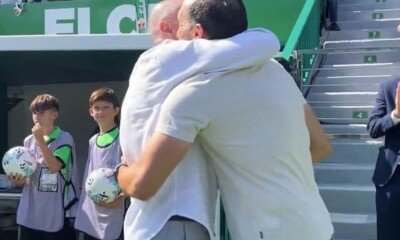 Manu Sarabia, exjugador del Athletic, vivió un emotivo momento con su hijo Eder antes del partido entre el Athletic y Elche...