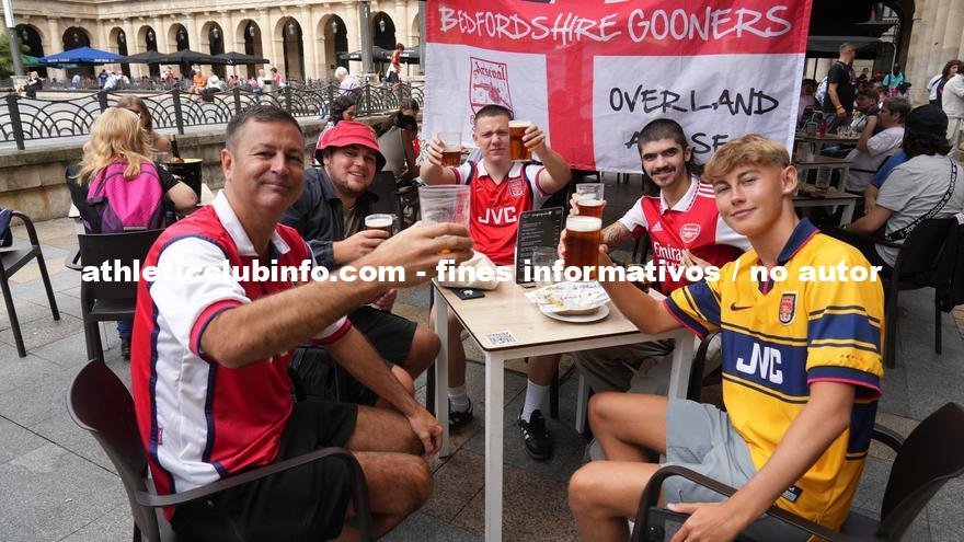 El Casco Viejo de Bilbao ha amanecido con un ambiente especial. Los seguidores del Arsenal y del Athletic se mezclan en las terrazas, disfrutando de pintxos y cervezas mientras esperan el inicio del partido. Aunque hay una notable presencia de hinchas ingleses, no se trata de una invasión masiva, sino de grupos que celebran la ocasión con alegría.